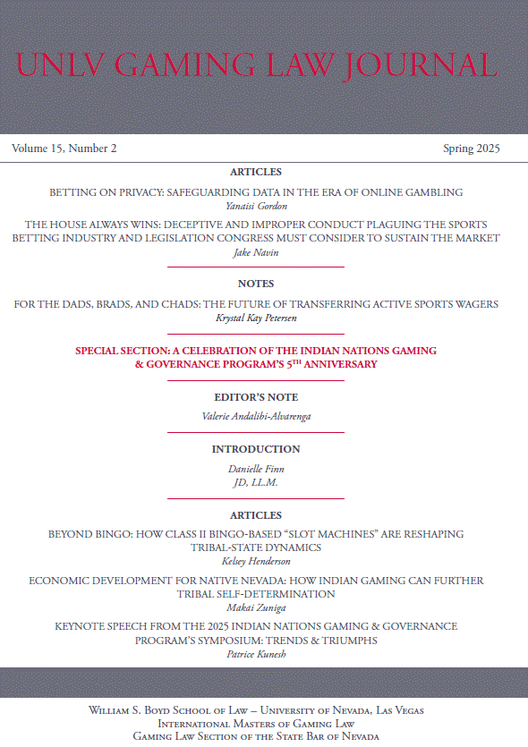 This Note discusses the recent surge in patron data collected by casino player tracking systems and the increasing need to protect the confidentiality and security of patron Personally Identifiable Information (PII) through the implementation of federal privacy legislation. Part I discusses the rise of the casino player tracking database systems. Part II explains and defines PII. Part III outlines current U.S. privacy laws applicable to the casino industry, describes casino liability standards, and examines patron remedies for a potential breach in the security of patron PII. Part IV assesses the strengths and weaknesses of U.S. privacy laws applicable to the casino industry, compares those laws to European and Canadian data security laws, and describes how the application of international privacy law in the U.S. will improve the current casino industry data security laws. Finally, Part V suggests that the current industry-based U.S. privacy laws are ineffective, and a nationwide standard, as exemplified in European and Canadian privacy law, should be implemented in the U.S. to ensure appropriate patron PII data security in the U.S. casino industry. - Commentary1 June 2017