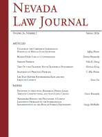 The Nevada Law Journal is published by students of the William S. Boyd School of Law at the University of Nevada, Las Vegas. The NLJ is a journal of legal scholarship dedicated to analyzing the law and policy implications of significant case law, legislation, administrative regulations and important legal events. The NLJ publishes at least three issues per year and includes submissions by legal practitioners, professors, and students of the William S. Boyd School of Law. Additionally, topics concerning legal symposia, surveys, and tributes to important figures of the law are included.